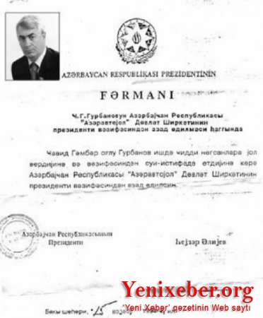 Xatırladaq ki, Cavid Qurbanov zamanında Ulu Öndər Heydər Əliyev tərəfindən vəzifəsindən qovulub və məlumatı verən mənbə bildirir ki, Cavid Qurbanova "STOP" qoyulması, onun müəyyən həddə qədər yüksəlişinin sərhədli olması da məhz həmin məqamla əlaqədardır.