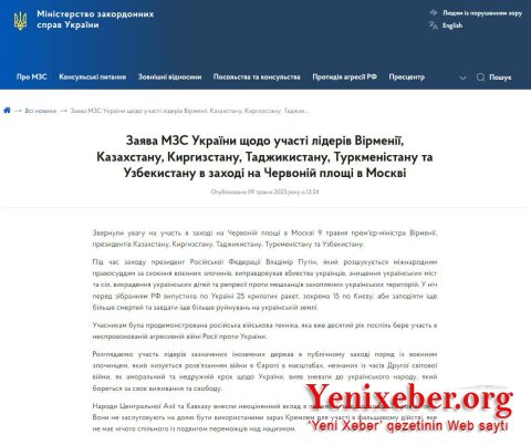 Yenixeber.org:Ukrayna XİN bu barədə bəyanat yayıb.