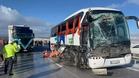 Türkiyənin Sivas şəhərinin Yıldızeli rayonunda sərnişin avtobusu TIR-la toqquşub.