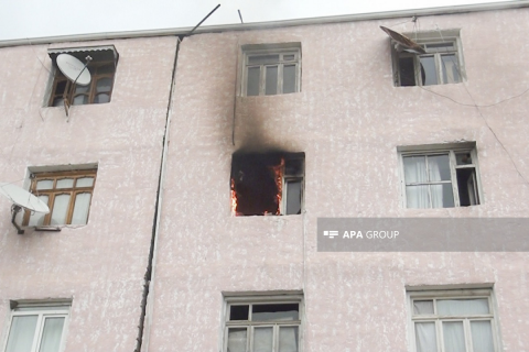 Biləsuvarda yaşayış binasında mənzil yanaraq kül olub
