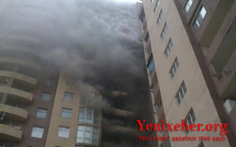 Bakıda doqquzmərtəbəli binada yanğın oldu: