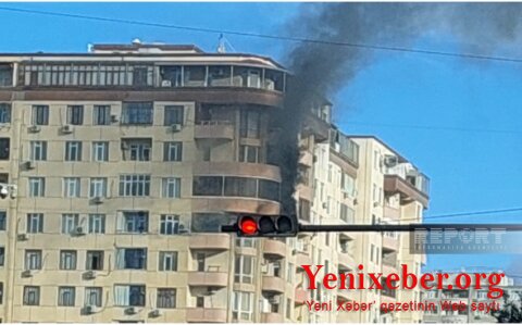 Bakıda çoxmərtəbəli yaşayış binası yanır