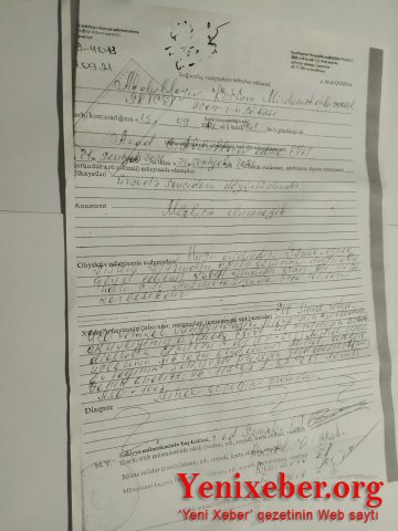 Hörmətli Prezident, hörmətli Arzu Rəhimov, xahiş edirəm istdiyi pulu verə bilmıdiyim üçün xəstə övladımı zorla qanunsuz hərbi xidmətə aparmaq istəyən Ucar rayon hərbi komissarı Ceyhun Əliyevin barəsidnə ciddi tədbirlər görəsiniz və xəstə oğlumun hərbi xidmətə aparılmasına möhlət hüququ verəsiniz ki, müalicə olunsun".