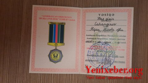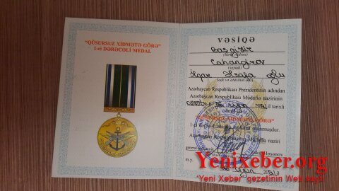 Mən, Azərbaycan Respublikasının ərazi bütövlüyünün, müstəqilliyinin və konstitusiya quruluşunun müdafiəsi ilə əlaqədar ikinci qrup əliləm. Ali Baş Komandan Cənab İlham Əliyevin göstərişi ilə 2021-ci ildə Bakı şəhərində mənzillə təmin olunmuşam. Qüsursuz xidmətə görə 1-ci, 2-ci və 3-cü dərəcəli medallarla təltif olunmuşam. Silahlə qüvvələrin 90, 95 və 100 illiyi yubiley, Azərbaycan ordusunun yaranmasının 10 illiyi yubileyi, hərbi xidmətdə fərqlənməyə görə 3-cü dərəcəli, Füzulinin, Cəbrayılın, Xocavəndin, Şuşanın azad olunmasına görə, döyüşdə fərqlənməyə görə və vətən müharibəsi iştirakçısı medalları ilə təltif olunmuşam. Atam Əlisafa Cahangirov birinci Qarabağ müharibəsinin iştirakçısı olub, anam Zəminə Cahangirova qəhrəman ana adını alıb və ömürlük 1-ci qrup əlildir. İki qardaşımdan biri Altay Cahangirov birinci Qarabağ döyüşlərində yaralanıb, ömürlük 2-ci qrup əlildir və digər qardaşım Fərahim Cahangirov birinci Qarabağ müharibəsi veteranıdır. Bir sözlə biz ailəlikcə vətənimizə və dövlətimizə bağlı şəxslərik.