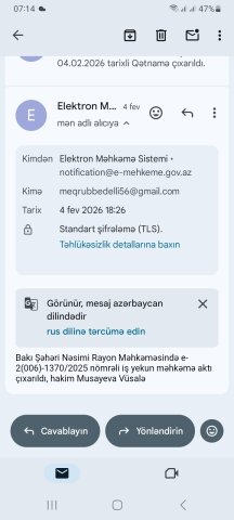 Vüsalə Musayeva 04.02.2026-cı ildə GECƏ yekun akt- QƏTNAMƏ çıxarıb. (?-iş vaxtından kənar mülki akt çıxarılması qeyri-prosessual özbaşınalıqdan özgə cür qiymətləndirilə bilməz) Məhkəmə Hüquq Şurasının (MHŞ), hüquq mühafizə orqanlarının bilə-bilə ədalətsiz akt çıxarılması qeyri-prosessuallığına reaksiyasını gözləyən qazi 8 mart bayram günündə Vüsalə Musayevanın AZAL-a “BAYRAM HƏDİYYƏSİ” -QƏTNAMƏSİ məlumatını alıb. Heç demə Nəsimi məhkəməsi qeyri-iş günü ŞƏNBƏ GÜNÜ-7 MART 2026-cı ildə GECƏ çıxardığı qətnaməni 8 MARTda elektron kabinetdə (04.02.2026 tarixinə) yerləşdirib. (?) Bunun necə ola bildiyini düşünməyə belə dəyməz, məhkəmələrin elektron kabinetə qanunsuz müdaxilələrinə MHŞ nəinki qiymət verir, əksinə, özü şərait yaradır.