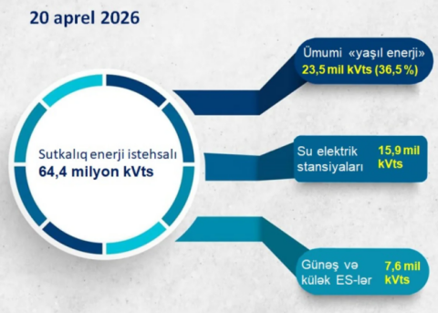 Aprelin 8-i, 17-si, 18-i, 20-si və digər günlərdə günün müəyyən saatlarında ölkə üzrə elektrik enerjisi istehlakının 36-41 %-inin məhz "yaşıl enerji" hesabına təmin olunması artıq təsadüfi göstərici deyil, formalaşmaqda olan yeni enerji reallığının əlamətidir. Xüsusilə aprelin 20-də qeydə alınan nəticə bu baxımdan diqqət çəkir: həmin gün ölkədə 64,4 milyon kilovat/saat elektrik enerjisi istehsal olunub, bunun 23,5 milyon kilovat/saatı və ya 36,5 %-i bərpa olunan mənbələrin payına düşüb. Bu enerjinin 15,9 milyon kilovat/saatı su elektrik stansiyalarında, o cümlədən işğaldan azad edilmiş ərazilərdə, 7,6 milyon kilovat/saatı isə günəş və külək stansiyalarında istehsal edilib.