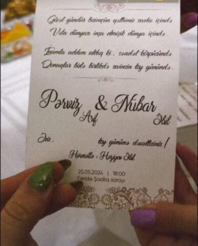 Yenixeber.org xəbər verir ki, o, bu haqda özü məlumat yayıb. Aparıcı toy dəvətnaməsini paylaşaraq mayın 25-də ailə qurcağını bildirib.