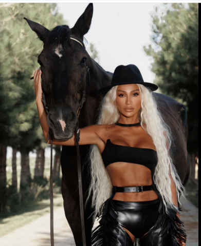 Yenixeber.org-un xəbərinə görə, müğənninin qara kovboy kostyumunda atla fotosessiyası gözəlliyi ilə seçilir.