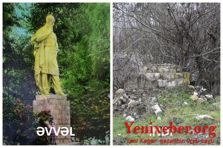 Məhəmməd Füzulinin Fuzili şəhərinin mərkəzindəki heykəlinin qalıqları tapılıb -