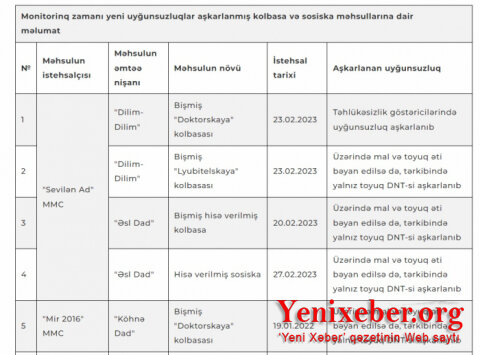 Kolbasa və sosiska ilə bağlı aşkarlanmış yeni uyğunsuzluqlar açıqlanıb - SİYAHI