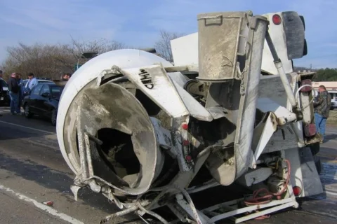 Ağdərədə beton qarışdıran maşın dərəyə aşıb -