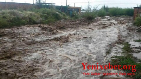 Qazaxda Coğaz çayı daşıb, küçəni sel suları basıb -