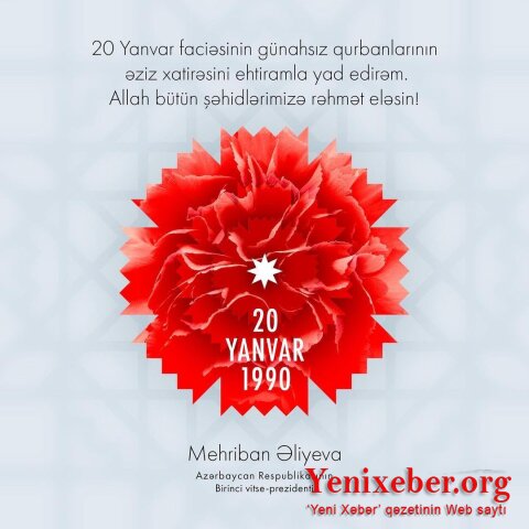 Первый вице-президент Мехрибан Алиева поделилась публикацией в своем аккаунте Instagram в связи с 33-й годовщиной трагедии 20 января.