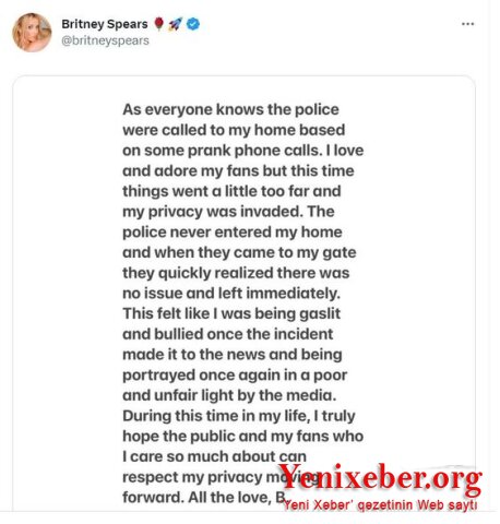 Незадолго после этого Бритни Спирс опубликовала твит, в котором призналась, что забота со стороны фанатов заставила ее чувствовать себя некомфортно.
