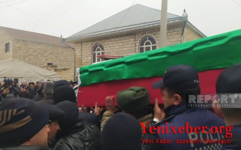 Проходит церемония прощания с военнослужащим, погибшим при подрыве на мине в Кяльбаджаре