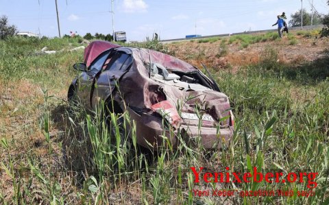 В Кюрдамире перевернулся автомобиль, 3 человека пострадали