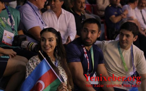Лейла Алиева наблюдает за выступлениями азербайджанских борцов на Исламиаде