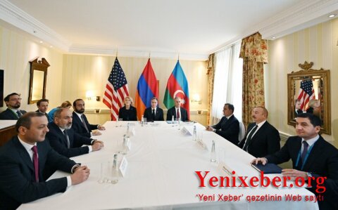 В Мюнхене началась совместная встреча президента Ильхама Алиева с госсекретарем США и премьер-министром Армении