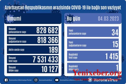 В Азербайджане зарегистрировано 34 новых случая заражения коронавирусом (COVID-19), 15 человек вылечились.