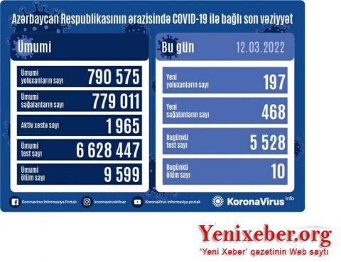 В Азербайджане за последние сутки выявлено 197 новых случаев заражения коронавирусом, 468 человек вылечились.