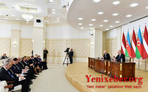 Президенты Азербайджана и Латвии выступили с заявлениями для печати