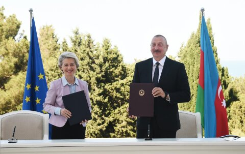 Prezident bildirib ki, Bakıda Avropa Komissiyasının prezidenti xanım Ursula Fon der Lyayenlə Avropa İttifaqı və Azərbaycan arasında enerji sahəsində strateji tərəfdaşlığa dair Anlaşma Memorandumu imzalanıb. Çıxışında Avropaya təbii qaz ixracını iki dəfə artırmağı planlaşdırdıqlarını da bildirib.
