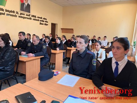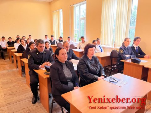 Həmçinin, çıxış edən RPŞ-nin digər əməkdaşı, polis mayoru Əmin İsmayılov Daxili İşlər Nazirliyinin Polis Akademiyası barədə şagirdlərə ətraflı məlumat verərək təhsil müəssisəsinin yaranma tarixi, inkişafı, ölkəmizdə hüquq elminin inkişafına verdiyi töhfələr, daxili işlər orqanlarının ali təhsilli hüquqşünaslarla təmin olunmasındakı fəaliyyətindən danışıb.