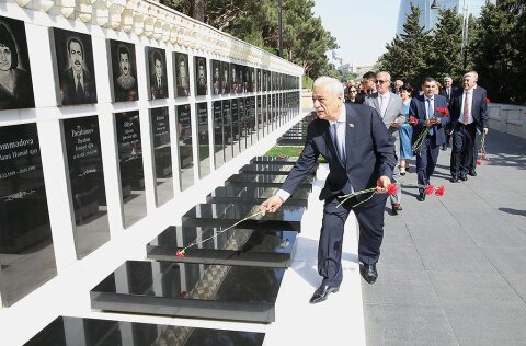 Şəhidlər xiyabanı da konfrans iştirakçıları tərəfindən ziyarət edilib, şəhid məzarlarına gül dəstələri düzülüb.