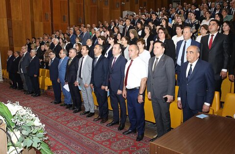 Ardınca Dövlət Himni səsləndirilib, Ulu Öndər Heydər Əliyevin, şəhidlərimizin və dünyadan köçən ittifaq üzvlərinin əziz xatirəsi bir dəqiqəlik sükutla yad olunub.