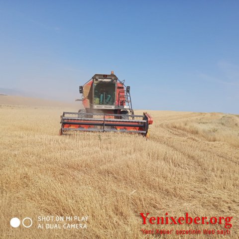 Yenixeber.org: Məhz bunun nəticəsidir ki, Füzuli rayonu ərazisinin böyük bir hissəsi işğal altında olmasına baxmayaraq 10 ildir ki, respublikada 100 min tondan artıq taxıl istehsal edən rayonlardan biridir. Füzulidə 2019-2020-ci təsərrüfat ilində 37 min hektardan artıq sahədə payızlıq əkin aparılıb, taxıl sahələrinə aqrotexniki qulluq göstərilib, zərərvericilərə qarşı mübarizə tədbirləri həyata keçirilib, taxıl sahələrində bol məhsul yetişdirilib. Artıq on gündür ki, rayonda taxıl biçininə strart verilib. Taxıl biçininin vaxtında, itkisiz və qısa müddətdə aparılması üçün 50-dan artıq taxılyığan kombayn prossesə cəlb olunmaqla, ilk əvvəl arpa sahələri və düşmənlə təmas xəttinə yaxın olan ərazilərdə biçin işləri həyata keçirilir. Bu günə kimi 5499 hektar sahədə taxıl biçini aparılıb ki, bunun da 4790 hektarı arpa, 709 hektarı isə buğdadır. Havaların yağıntısız, quraq keçməsi biçin mövsümünün vaxtında və itkisiz başa çatdırılmasına imkan verəcəkdir.