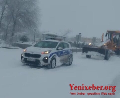 Xızıda yol polisləri yolların qardan təmizlənməsi üçün tədbirlər görüblər