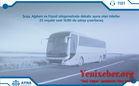 Şuşa, Ağdam və Füzuli istiqamətində dekabr ayına biletlər satışa çıxarılacaq