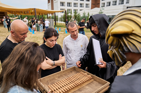 İlham Əliyev yenidənqurmadan sonra açılışı olan Dərbənddəki Azərbaycan Teatrının kollektivini