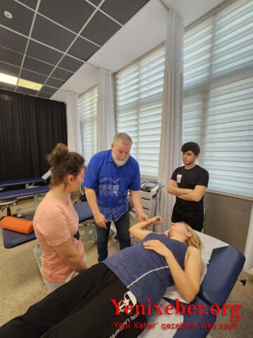 Yenixeber.org: Magistratura təhsil səviyyəsinin tədrisi ingilis dilində aparılan “İdman tibbi və reabilitasiya” ixtisası üzrə təhsil alan I tədris ili tələbələrinə “Yuxarı ətraf zədələnmələri və onların reabilitasiyası” fənnini tədris edən professor, yuxarı ətraflarda baş verən çıxıqlar, sınıqlar və digər zədələnmələr haqqında geniş mühazirə oxuyaraq bərpa və reabilitasiya zamanı mümkün müalicə üsulları, müalicəvi idman terapiyası və digər müxtəlif reabilitasiya texnikaları haqqında məlumat verib.