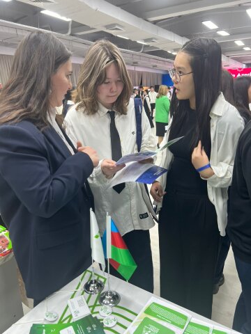 Sərgiyə gələn abituriyent və tələbələr ASA-nın ali təhsil proqramları, akademik imkanları və elmi nailiyyətləri haqqında məlumat əldə edir, həmçinin onların ikili diplom proqramları və qəbul tələbləri ilə bağlı sualları cavablandırılır.