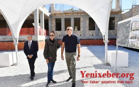 Prezident və birinci xanım Şuşa şəhərində 1 saylı məktəbin tikinti işləri ilə tanış olublar