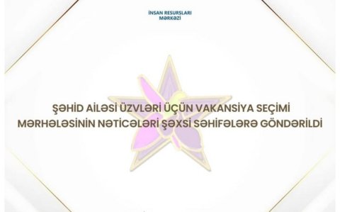 Şəhid ailəsi üzvləri üçün MİQ üzrə vakansiya seçiminin nəticələri açıqlanıb