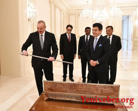 ICESCO-nun Baş direktoru Salim bin Məhəmməd əl-Malik Azərbaycan Prezidenti İlham Əliyevə xatirə hədiyyəsi təqdim edib.