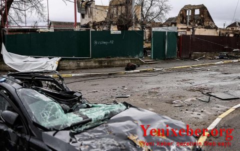 Ukraynanın yüzlərlə dinc sakininin qətlə yetirildiyi Buça şəhərinin fotoları yayılıb.