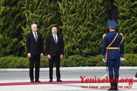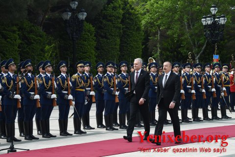 Yenixeber.org: Hər iki ölkənin dövlət bayraqlarının dalğalandığı meydanda Litva Respublikasının Prezidentinin şərəfinə fəxri qarovul dəstəsi düzülüb.