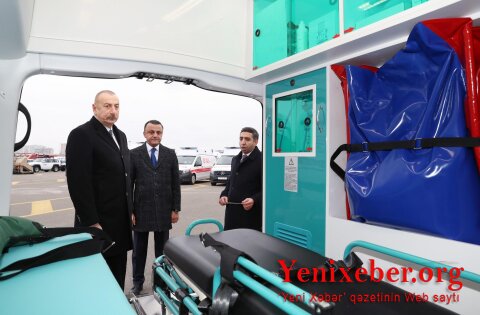 Sonra dövlət başçısı İcbari Tibbi Sığorta üzrə Dövlət Agentliyi tərəfindən alınmış müasir təcili tibbi yardım avtomobillərinə baxıb.