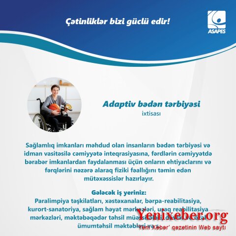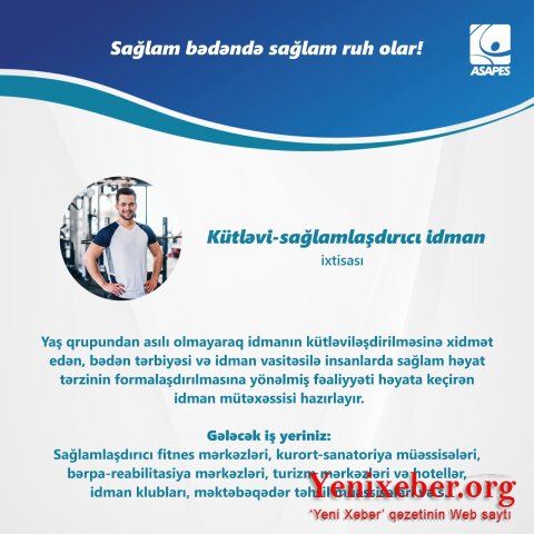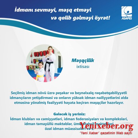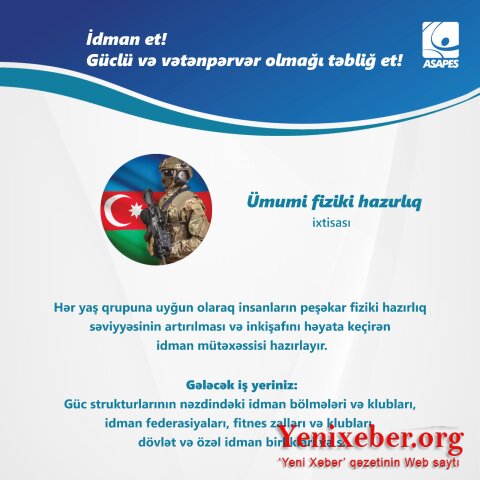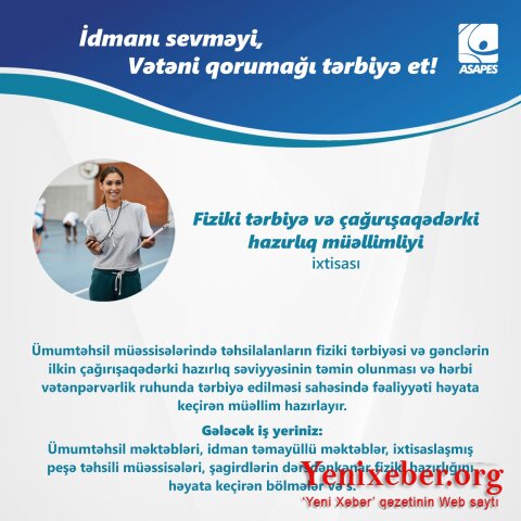 2023/2024-cü tədris ilində Azərbaycan Dövlət Bədən Tərbiyəsi və İdman Akademiyasında (ASAPES) daha 3 yeni ixtisas üzrə kadr hazırlığına başlanılır.
