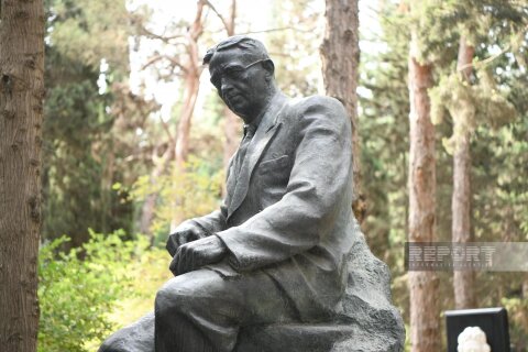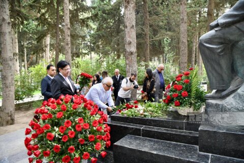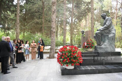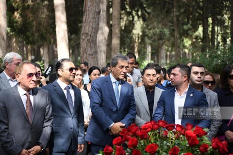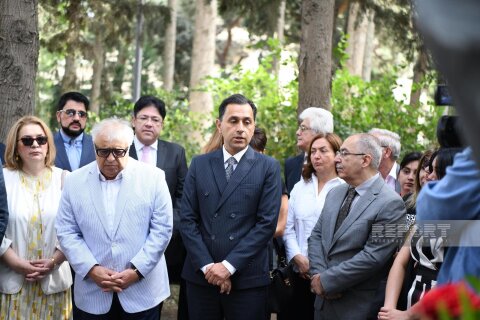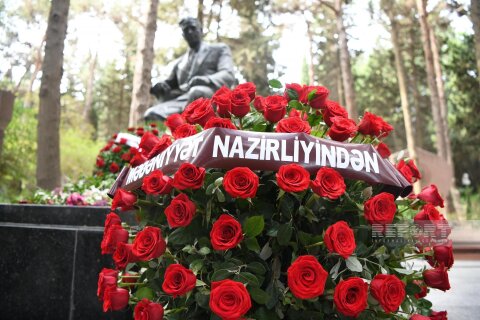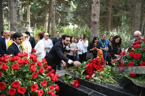 Milli Musiqi Günü münasibətilə Üzeyir Hacıbəylinin məzarı ziyarət olunub-FOTOLAR