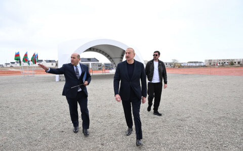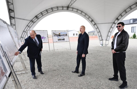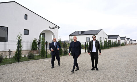 Prezident İlham Əliyev kənddə hazır evlərə baxıb.