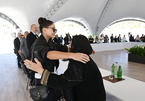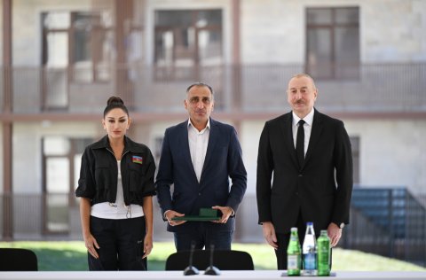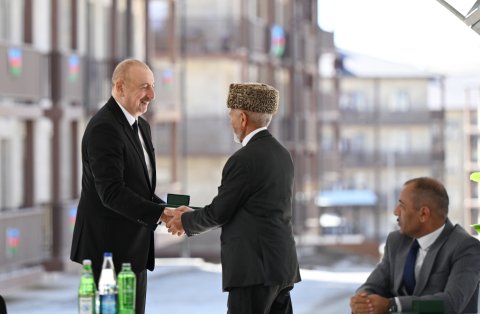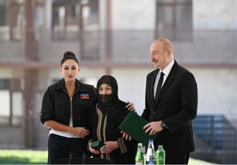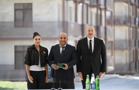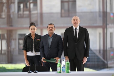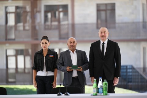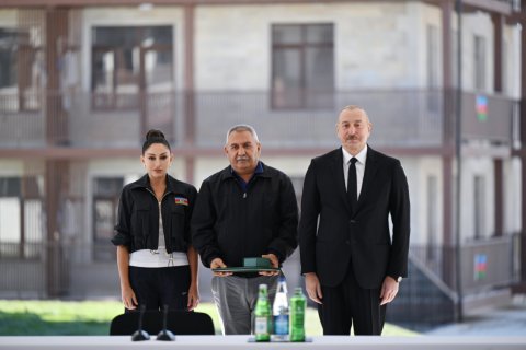 Sizə isə mən burada xoşbəxt həyat arzulayıram. Siz buna layiqsiniz. Siz uzun illər çadırlarda, qaçqın düşərgələrində yaşamısınız. Biz imkan daxilində çalışmışıq ki, həyatınızı bir az yüngülləşdirək. Burada artıq 100-dən çox insan məskunlaşıb, bu gün də, dünən də gələnlər var. Onlardan bir hissəsi Biləsuvardakı qaçqın şəhərciyində yaşamışdır. Yəqin ki, mənim o şəhərciyə gəlişimi xatırlayan da var. Birinci dəfə 20 il bundan əvvəl orada olmuşam. Çalışmışıq ki, yeni mənzillər, yeni evlər tikək və təqribən 300 minə yaxın, bəlkə də çox keçmiş köçkün 2020-ci ilə qədər normal şəraitlə təmin edilmişdir. Ancaq ondan da çox insan ağır vəziyyətdə yaşamışdır. Ona görə bu gözəl binalarda yaşamaq sizin haqqınızdır, siz buna layiqsiniz. Əminəm ki, bu torpaqlarda yaşamış və oradan köçmüş, eyni zamanda, bu torpaqları heç vaxt görməmiş sizin uşaqlarınız, nəvələriniz burada rahat və xoşbəxt yaşayacaq, öz dövləti ilə, xalqı ilə həmişə fəxr edəcəkdir. Bir daha sizi təbrik edirəm.