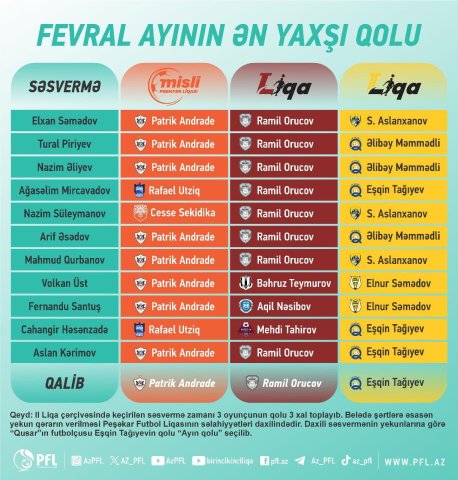 Peşəkar Futbol Liqasının təşkil etdiyi “Ayın qolu” layihəsində fevralın qalibləri müəyyənləşib.