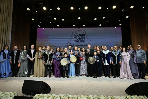 Daha sonra Prezident İlham Əliyev və birinci xanım Mehriban Əliyeva Ağdam Muğam Mərkəzinin açılışına həsr olunan konsert proqramına baxıblar.