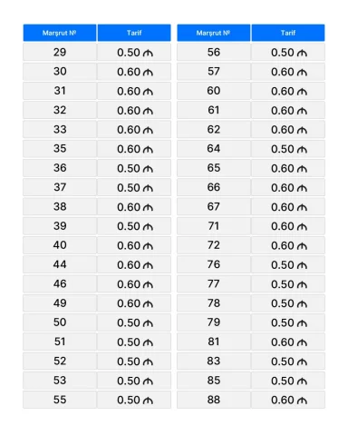 Bakıda bəzi avtobuslarda yeni tariflər müəyyənləşib -CƏDVƏL/FOTOLAR