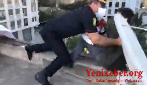 Yenixeber.org: Hadisə yerinə gələn polis əməkdaşları onu binanın damından düşürməyə nail olublar.