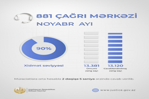 Ötən ay Ədliyyə Nazirliyinin Çağrı Mərkəzinə edilən müraciətlərin sayı açıqlanıb